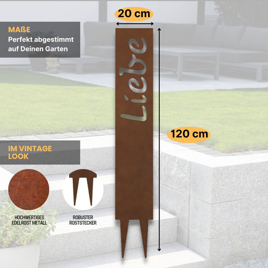 "Liebe" Gartenstecker aus Metall in Edelrostoptik