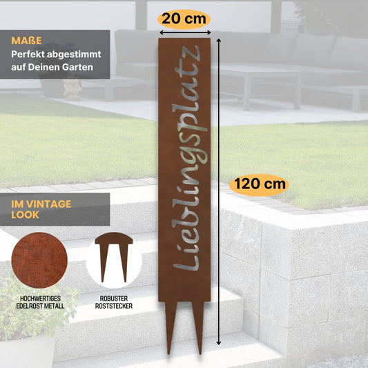 "Lieblingsplatz" Gartenstecker aus Metall in Edelrostoptik