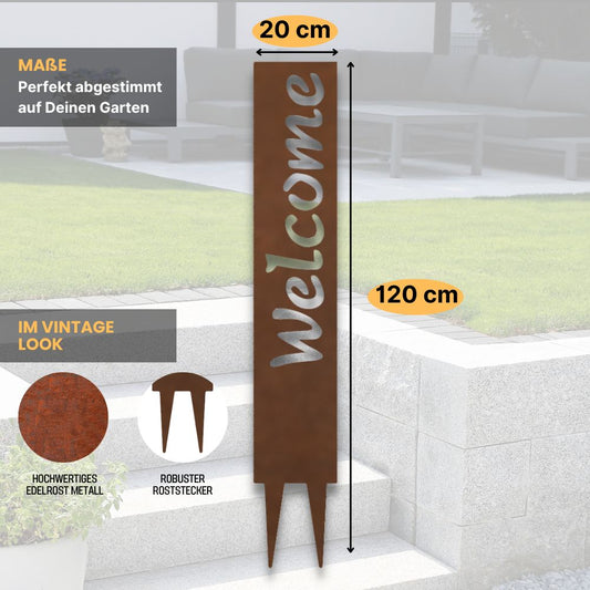 "Welcome" Gartenstecker aus Metall in Edelrostoptik