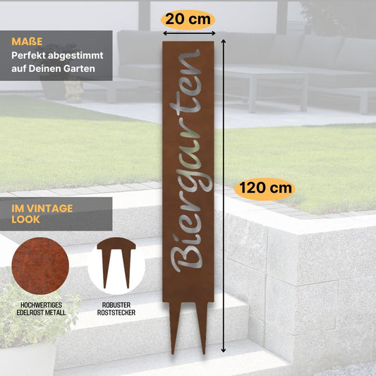 "Biergarten" Gartenstecker aus Metall in Edelrostoptik